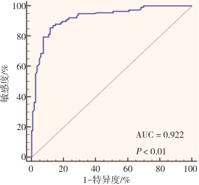 Abstract:Objective To analyze the influencing factors of chronic atrophic gastritis diagnosed by gastroscopy based on living habits and cytochrome P4501A1 (CYP1A1) gene polymorphism.Methods A total of 118 patients with chronic atrophic gastritis diagnosed by gastroscopy in our hospital from May 2023 to May 2024 were included in the chronic atrophic gastritis group, and another 120 patients with chronic non-atrophic gastritis diagnosed by gastroscopy during the same period were included in the chronic non-atrophic gastritis group. Clinical data, lifestyle, gastroscopy and CYP1A1 gene polymorphism were compared between the two groups. The risk factors of chronic atrophic gastritis diagnosed by gastroscopy were analyzed by multivariate Logistic regression, and the regression equation was established. Receiver operating characteristic curve (ROC curve) was drawn to analyze the predictive value of the regression equation for the diagnosis of chronic atrophic gastritis by gastroscopy.Results Multivariate Logistic analysis showed that Helicobacter pylori infection, family history of gastritis, fast eating, hot eating, insomnia, CYP1A1 genotype G/G were the risk factors for the diagnosis of chronic atrophic gastritis by gastroscopy (P < 0.05). The above factors were included in the regression equation: Logit (P) = -8.252 + Helicobacter pylori infection × 0.741 + family history of gastritis × 0.636 + fast food × 0.595 + hot food ×0.754 + insomnia × 0.791 + CYP1A1 genotype G/G × 0.752. According to the regression equation, ROC curve was drawn to predict the occurrence of chronic atrophic gastritis diagnosed by gastroscopy. The results showed that when Logit (P) > 0.727, the sensitivity was 87.29%, the specificity was 86.67%, and the area under the curve (AUC) was 0.922.Conclusion The influencing factors of chronic atrophic gastritis diagnosed by gastroscopy include Helicobacter pylori infection, family history of gastritis, fast food, hot food, insomnia, CYP1A1 genotype G/G, the establishment of the regression equation is effective, which can lay a foundation for screening high-risk patients and formulating preventive interventions.