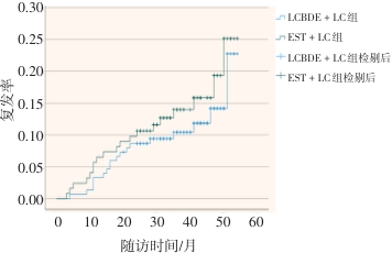 Abstract:Objective To evaluate the long-term efficacy differences between laparoscopic common bile duct exploration (LCBDE) and endoscopic sphincterotomy (EST) combined with laparoscopic cholecystectomy (LC) in treating patients with gallstones and calculus of the common bile duct.Methods A retrospective study was conducted involving 272 patients with gallstones accompanied by calculus of the common bile duct (common bile duct diameter ranging from 9 ~ 15 mm, with the largest stone diameter < 15 mm) who met specific criteria. The patients were systematically compared and analyzed based on surgical methods, divided into the LCBDE + LC group and the EST + LC group. Comparing the recurrence rates of calculus of the common bile duct.Results Postoperative follow-up data showed that the LCBDE + LC group exhibited a relatively lower trend in postoperative stone recurrence rate (12.0% vs. 15.6%), but statistical analysis revealed no significant difference between the groups (P > 0.05).Conclusion For patients with gallstones and calculus of the common bile duct with a common bile duct diameter of 9 ~ 15 mm, both LCBDE + LC and EST + LC are safe and effective treatment options. When making clinical decisions, it is recommended to conduct a comprehensive evaluation based on the individual characteristics of the patient and select the most suitable surgical plan.