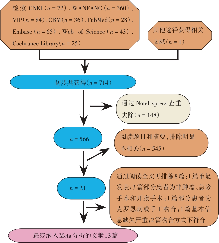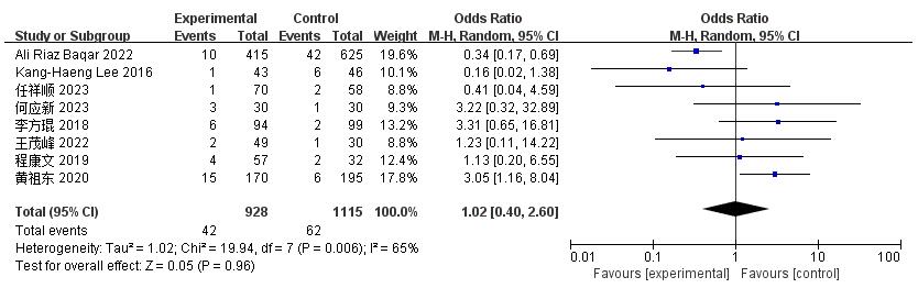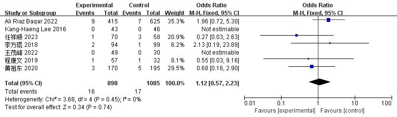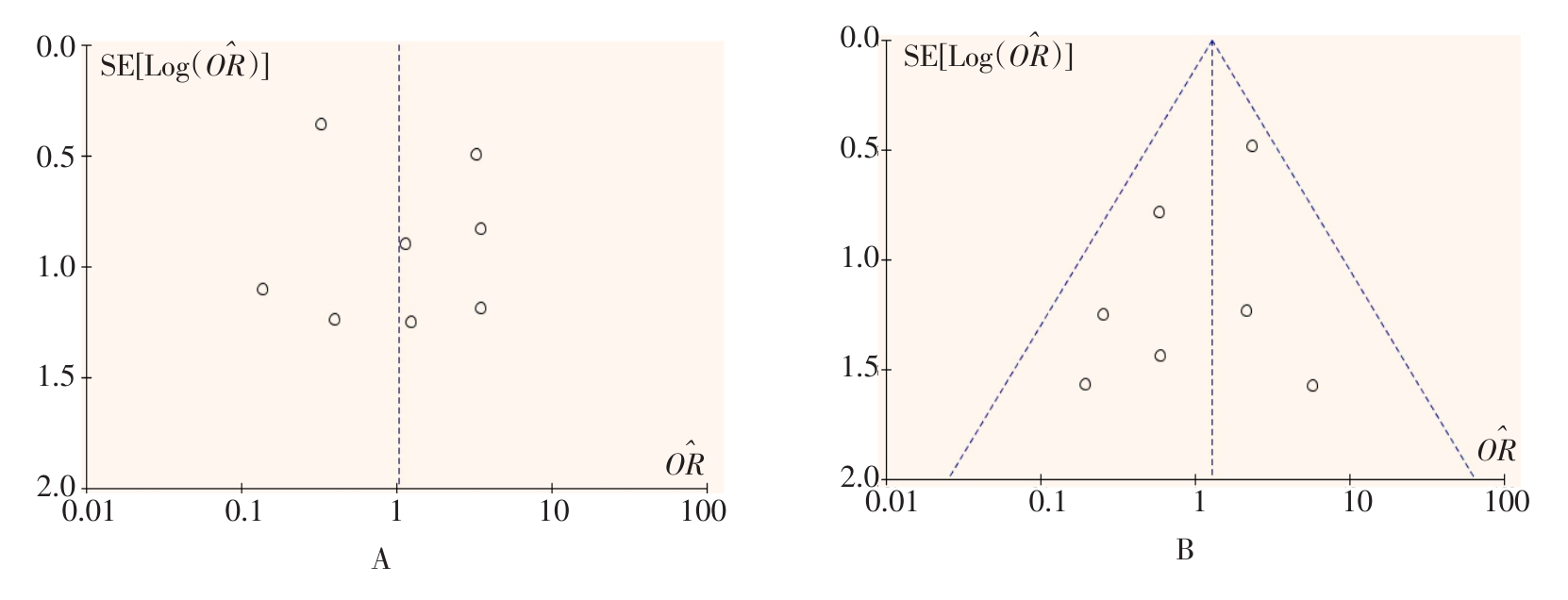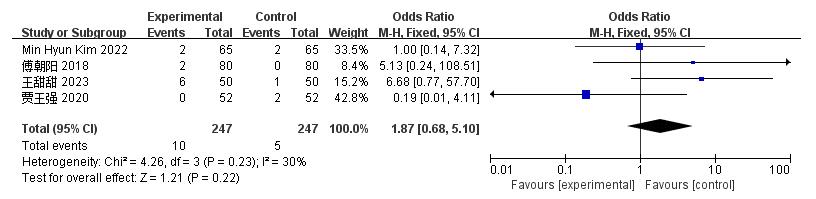 摘要:目的 探究腹腔镜下右半结肠癌根治术回结肠行侧侧吻合(SS)与端侧吻合(ES)的临床疗效和安全性。方法 检索PubMed、Embase、Web of Science、Cochrane Library、中国知网、万方数据、维普网和中国生物医学文献数据库中,从建库到2024年11月发表的SS与ES对比的相关临床研究。筛选并提取文献资料后,采用纽卡斯尔-渥太华量表(NOS)评价回顾性研究的文献质量,Cochrane系统评价随机对照试验(RCT)的文献质量,Rev Man 5.3软件行Meta分析、敏感性分析和发表偏倚分析。结果 纳入9篇回顾性研究和4篇RCT,共2 632例患者。回顾性研究的Meta分析结果显示:与SS相比,ES的耐受流质时间短(MD = -0.20,95%CI:-0.40~0.00,P < 0.05),每日腹泻次数少(MD = -1.06,95%CI:-1.79~-0.23,P < 0.05),但术后12 h疼痛评分较高(MD = 0.95,95%CI:0.50~1.40,P < 0.05)。两种吻合方式的吻合口并发症总发生率比较,差异无统计学意义(OR^ = 1.05,95%CI:0.22~5.14,P > 0.05)。回顾性研究的敏感性分析显示:ES肠梗阻发生率高于SS,差异有统计学意义(OR^ = 2.18,95%CI:1.15~4.14,P < 0.05);RCT的敏感性分析显示:SS的吻合口并发症总发生率明显高于ES,差异有统计学意义(OR^ = 5.26,95%CI:1.91~14.48,P < 0.05),其余结局指标结果均未发生逆转。发表偏倚风险分析显示,未见明显发表偏倚。结论 腹腔镜下右半结肠癌根治术中,回结肠行ES较SS略有优势,两种吻合方式均是安全、有效的,手术医生可根据自身和患者具体情况,综合考虑,选择合适的吻合技术,以提高术后恢复效果。