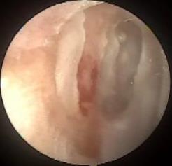摘要:目的 探讨耳内镜下耳屏软骨-软骨膜鼓膜修补术后的短期疗效。方法 回顾性分析2019年9月-2022年8月该院收治的78例鼓膜穿孔患者的临床资料,患者均采用耳内镜下鼓膜修补术。术后随访3个月,观察鼓膜形态和穿孔愈合情况,记录内镜图像、干耳时间、术前术后听力及耳鸣情况,以及外耳道狭窄等并发症的发生率。结果 术后3个月,鼓膜穿孔愈合率为97.44%(76/78),愈合良好,平均气导听阈较术前明显改善,气骨导间距较术前明显缩小,耳鸣较术前明显改善,差异均有统计学意义(P<0.05)。干耳时间为(4.21±1.12)周。术后出现肉芽5例,再穿孔2例,真菌感染2例,术腔感染、耳屏感染、外耳道狭窄和切口瘢痕各1例,所有患者术后均未发生面神经麻痹和感音神经性聋等严重并发症。结论 耳内镜下耳屏软骨-软骨膜鼓膜修补术是一种安全、有效的手术方法。根据术后愈合规律、内镜下鼓膜和外耳道形态特征,可为鼓膜修补术后正常中耳转归和并发症的诊疗,提供临床参考。