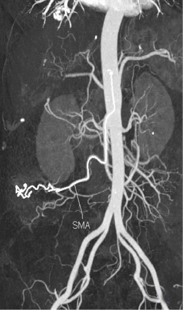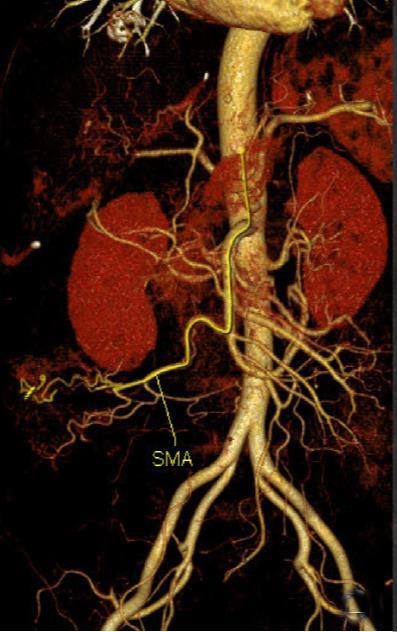 摘要:目的 分析计算机体层摄影血管造影(CTA)在腹腔镜结肠癌根治术前评估中的应用效果。方法 回顾性分析2021年1月-2024年2月于该院接受腹腔镜结肠癌根治术的120例患者的临床资料。其中,60例行常规腹部CT和CTA,60例行磁共振成像(MRI)。以术后病理为金标准,判断CTA对临床T分期与术后病理的一致性,以及评估肿瘤是否侵犯肠系膜血管和周围组织的准确度。结果 术前CTA诊断T分期的准确率为95.00%(57/60),一致性好(Kappa = 0.925,P < 0.05);术前MRI诊断结肠癌T分期的准确率为98.33%(59/60),两者比较,差异无统计学意义(χ2 = 0.26,P > 0.05)。CTA预判肿瘤是否累及肠系膜上动脉、肠系膜上静脉、肠系膜下动脉、肠系膜下静脉、腹主动脉、肾动脉、肾静脉和脾动脉等血管,与术后病理的一致性好。特别是在预测肠系膜血管受累方面,CTA的敏感度为94.44%,特异度为95.83%,准确度高达95.00%。结论 对于行腹腔镜结肠癌根治术的患者,术前CTA不仅能清晰地显示结肠癌T分期,还能揭示肠系膜血管的走行和变异,以及肿瘤与周围组织的关系和侵犯程度,从而为手术规划提供强有力的支持,确保了腹腔镜手术的安全性,减少了不必要的手术风险。