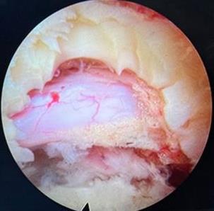 摘要:目的 观察经椎间孔入路内镜下腰椎间盘切除术(TELD)和经椎板间入路内镜下腰椎间盘摘除术(IELD)治疗L4/5节段脱垂型腰椎间盘突出症(LDH)的临床疗效。方法 回顾性分析2020年11月-2022年11月该院采用脊柱内镜手术治疗的75例L4/5节段脱垂型LDH患者的临床资料。根据手术入路的不同,将患者分为TELD组(53例)和IELD组(22例)。比较两组患者的手术情况和术后疗效。结果 与TELD组比较,IELD组的手术时间明显缩短,术中透视次数明显减少,差异均有统计学意义(P < 0.05);两组患者住院时间和并发症发生率比较,差异均无统计学意义(P > 0.05)。所有患者术后均获得12~19个月的随访。两组患者末次随访时的视觉模拟评分法(VAS)评分和Oswestry功能障碍指数(ODI)明显低于术前,且IELD组明显低于TELD组,差异均有统计学意义(P < 0.05)。按照突出物和神经根的不同位置进一步分析,两组肩上型患者(TELD组10例,IELD组6例)末次随访时的VAS评分和ODI明显低于术前,且IELD组末次随访时的VAS评分明显低于TELD组,差异均有统计学意义(P < 0.05);两组腋下型患者(TELD组8例,IELD组16例)末次随访时的VAS评分和ODI明显低于术前,且IELD组明显低于TELD组,差异均有统计学意义(P < 0.05);35例肩前型患者经TELD术后,末次随访时的VAS评分和ODI明显低于术前,差异有统计学意义(P < 0.05)。按照突出物的不同Lee分区进一步分析,两组Lee Ⅲ区患者(TELD组44例,IELD组10例)末次随访时的VAS评分和ODI明显低于术前,且IELD组的ODI明显低于TELD组,差异均有统计学意义(P < 0.05);两组Lee Ⅳ区患者(TELD组9例,IELD组12例)末次随访时的VAS评分和ODI明显低于术前,且IELD组明显低于TELD组,差异均有统计学意义(P < 0.05)。结论 采用TELD和IELD治疗L4/5节段脱垂型LDH,均可获得较满意的减压效果,但IELD的手术时间相对较短,X线透视次数较少,且对肩上型、腋下型、Lee Ⅲ区和Lee Ⅳ区的减压效果更有优势。