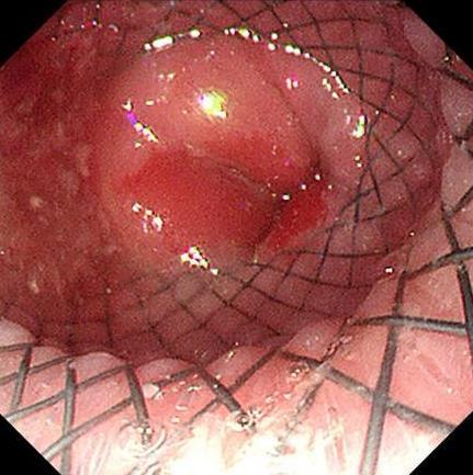 摘要:目的 探讨内镜测距盲推置入覆膜食管支架治疗晚期食管癌的临床疗效。方法 回顾分析2014年1月-2023年12月该院采用内镜测距盲推置入覆膜食管支架治疗的182例晚期食管癌患者的临床资料。观察操作时间、患者舒适度、支架置入位置是否准确、术后出血和胸痛等情况。结果 182例均成功置入支架,平均置入时间(11.0±4.0)min,支架位置较预期位置相差的距离≤0.5 cm,术后6 h进食半流质,置入过程中,未出现明显恶心、呕吐和呛咳等症状,术后出血25例,发生率为13.7%,不需要静脉麻醉,术后未发生穿孔,术后胸痛发生率为82.4%,患者吞咽困难得到明显缓解。结论 内镜测距盲推置入覆膜食管支架用于晚期食管癌伴食管梗阻患者,具有操作简便、支架位置准确、并发症少和患者不适感轻等优点,可作为临床食管支架置入的一种新选择。