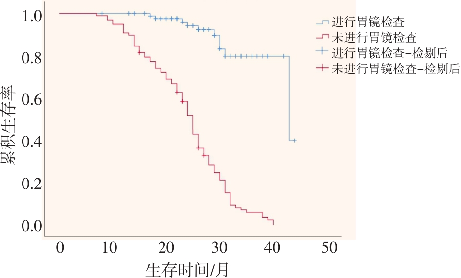 摘要:目的 分析1 052例结直肠腺瘤住院患者行胃镜检查的资料,以期为结直肠腺瘤患者上消化道黏膜病变的早期发现和治疗提供参考依据。方法 回顾性分析2023年1月1日-2023年12月31日在九江学院附属医院消化内科住院的1 052例结直肠腺瘤患者的临床资料,分析患者临床表现、结肠镜结果、胃镜结果和疾病类型分布。结果 1 052例患者均伴随消化不良、胃肠道功能异常、胃食管反流和消化道出血症状,均检查出上消化道黏膜疾病,检出率为100.00%,192例(18.25%)患者只有1个胃镜诊断结果,860例(81.75%)患者有2个或2个以上诊断结果。共检出1 881处病变,以胃黏膜病变为主,其次为食管黏膜病变和十二指肠黏膜病变。前三检出疾病分别为:慢性非萎缩性胃炎932处,胃黏膜糜烂和/或胃肠上皮化生344处,以及胃息肉219处。不同性别疾病类型分布特点:大部分男性食管黏膜病变、胃黏膜病变和十二指肠黏膜病变占比高于女性,男性食管炎占比高于女性;不同年龄段疾病类型分布特点:年龄 > 45岁的患者胃息肉增多;Kaplan-Meier生存曲线显示,与未行胃镜检查的结直肠腺瘤患者相比,行胃镜检查的结直肠腺瘤患者无复发时间更长(HR^ = 13.103,95%CI:6.589~26.057,P < 0.01)。结论 结直肠腺瘤患者建议行胃镜检查,以明确是否存在上消化道黏膜疾病。 > 45岁和男性为高风险人群,建议定期检查,通过早期发现和治疗,预防此类人群上消化道黏膜病变的发生。