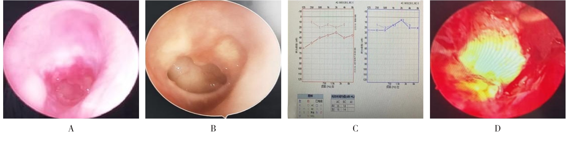 摘要:目的 探讨慢性化脓性中耳炎合并耳真菌病患者行耳内镜下软骨-软骨膜复合体鼓室成形术的临床疗效。方法 选取2021年1月-2023年12月该院收治的,于耳内镜下采用耳屏软骨-软骨膜复合体行鼓室成形术的慢性化脓性中耳炎患者68例,根据是否合并过耳真菌病,将患者分为真菌组和对照组,各34例。真菌组术前合并耳真菌病,均行抗真菌治疗后好转,其中18例合并湿耳;对照组未曾合并过耳真菌病,术前均为干耳。所有患者均接受了耳内镜下鼓室成形术,采用软骨-软骨膜复合体修复穿孔。术后随访至少3个月。于术前和术后3个月,检查纯音听力。观察两组患者鼓膜修补成功率、听力改善情况和干耳时间。结果 真菌组和对照组的鼓膜修补成功率分别为88.24%(30/34)和91.18%(31/34),差异无统计学意义(P > 0.05);两组患者术后3个月气骨导间距明显小于术前,差异有统计学意义(P < 0.05);但两组间比较,差异无统计学意义(P > 0.05);真菌组干耳时间长于对照组,差异有统计学意义(P < 0.05)。结论 慢性化脓性中耳炎合并耳真菌病有时伴有湿耳,患者需要更长的时间来达到完全健康的状态,使用软骨-软骨膜复合体的耳内镜下鼓室成形术,是治疗慢性化脓性中耳炎合并耳真菌病患者的有效方法。值得应用于临床。