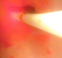 摘要:目的 探讨经皮经胆道镜激光消融术与光动力疗法(PDT)治疗胆管黏液性囊性肿瘤的临床疗效及治疗技巧。方法 回顾性分析2018年1月-2023年12月该院消化内科收治的13例胆管黏液性囊性肿瘤患者的临床资料,采取经皮经胆道镜激光消融术、PDT治疗或两者联合治疗。观察患者手术相关情况、病灶情况、引流情况、术后6个月生存情况和并发症发生情况。结果 所有患者均顺利完成经皮经胆道镜激光消融、PDT或两者联合治疗,治疗成功率为100%。所有患者术后体温恢复正常。7例患者术后1周内黄疸明显减退,其余6例黄疸虽然未明显减退,但血清总胆红素有所下降或保持稳定。所有患者术后1周内,胆管各分支新生物减少,病灶明显缩小。术后早期(30 d内),所有患者引流管均保持通畅,未发生因肿瘤组织脱落或坏死物堵塞所导致的急性堵管事件。术后引流管留置时间平均为4.2个月。术后6个月,无死亡病例,术后6个月生存率为100%。未发生胆道穿孔和大出血等严重并发症。结论 经皮经胆道镜激光消融术联合PDT治疗胆管黏液性囊性肿瘤,可以缩小病灶范围,缓解胆道梗阻,提高患者生活质量,且并发症少。值得临床推广应用。